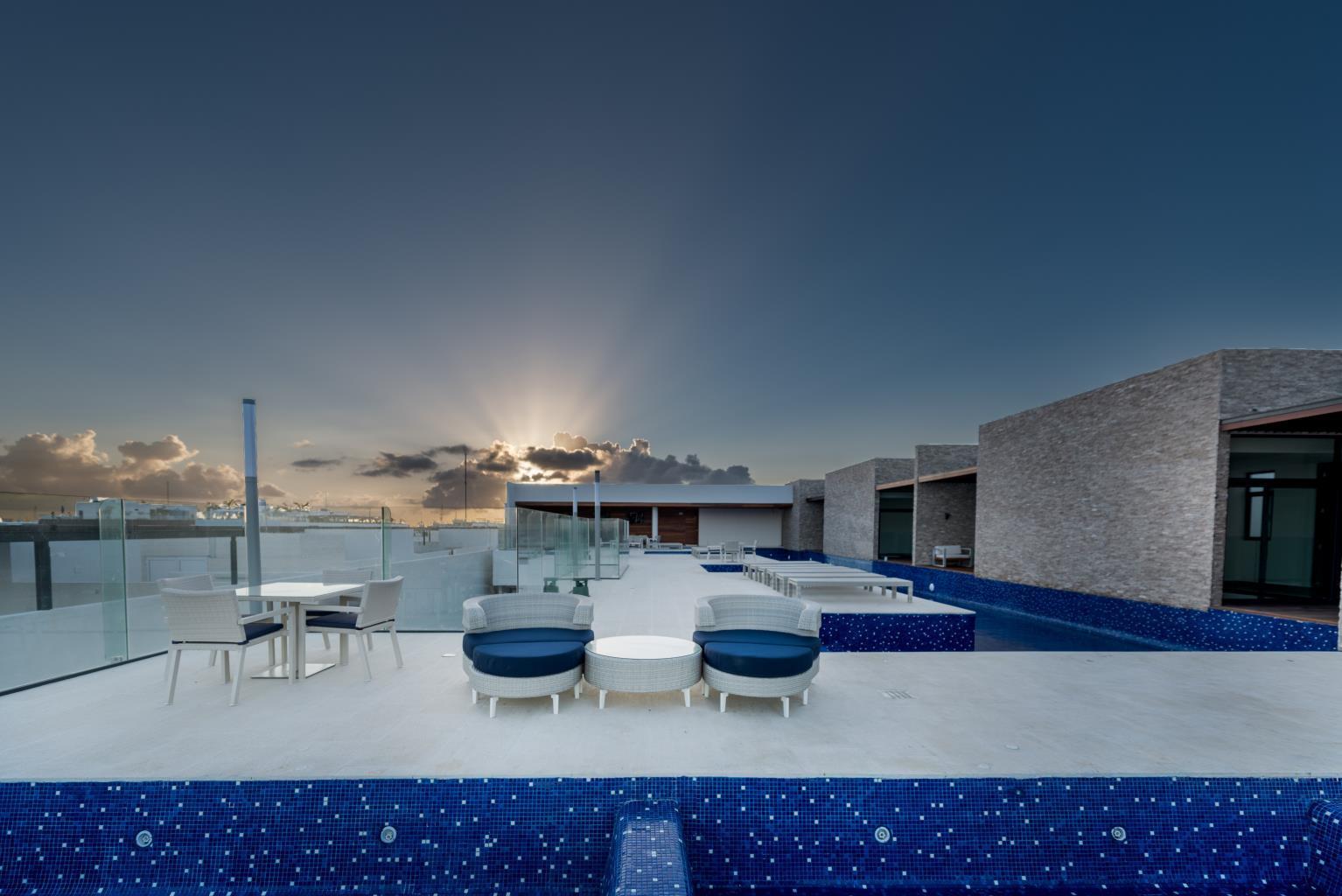 controlled entry, gym. A superb rooftop common area with sensational views to the Mexican Caribbean.