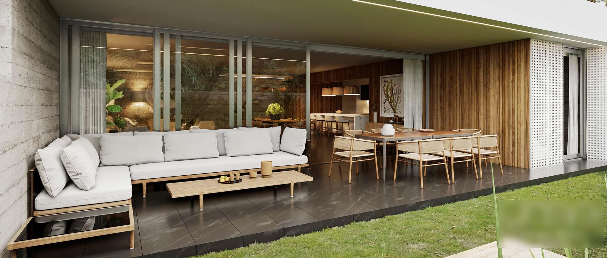 A modern and innovative style in outdoor space design. Large green areas, exclusive amenities, gym, and swimming pools. Large terraces, gardens, concierge services, vehicular access to each building, underground parking, and courtesy parking for guests.