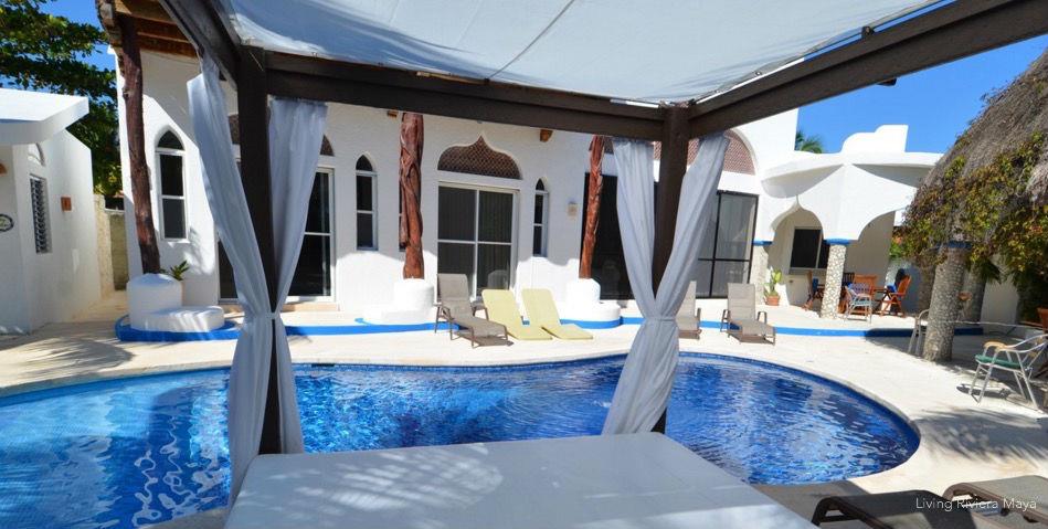 Located on Akumal’s magnificent main beach, this Moroccan-Mediterranean style home operates as a B&B.