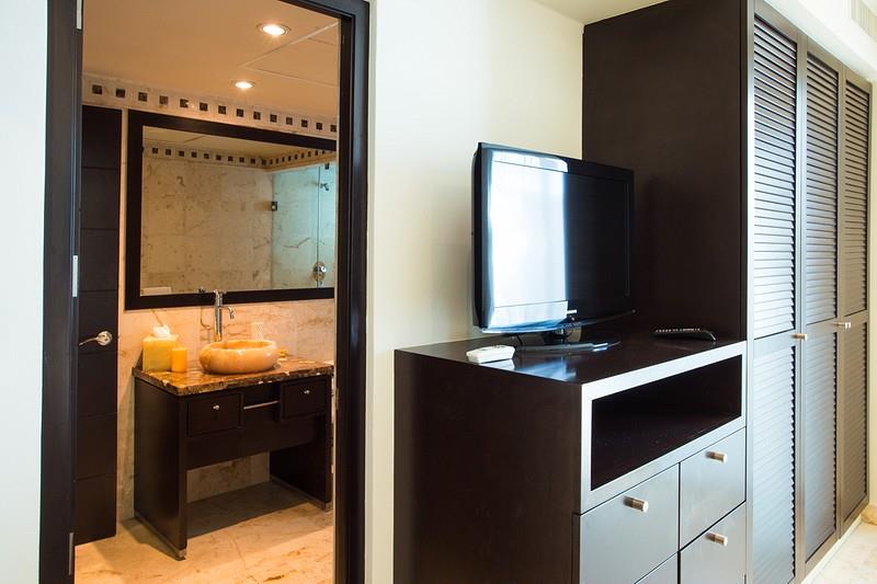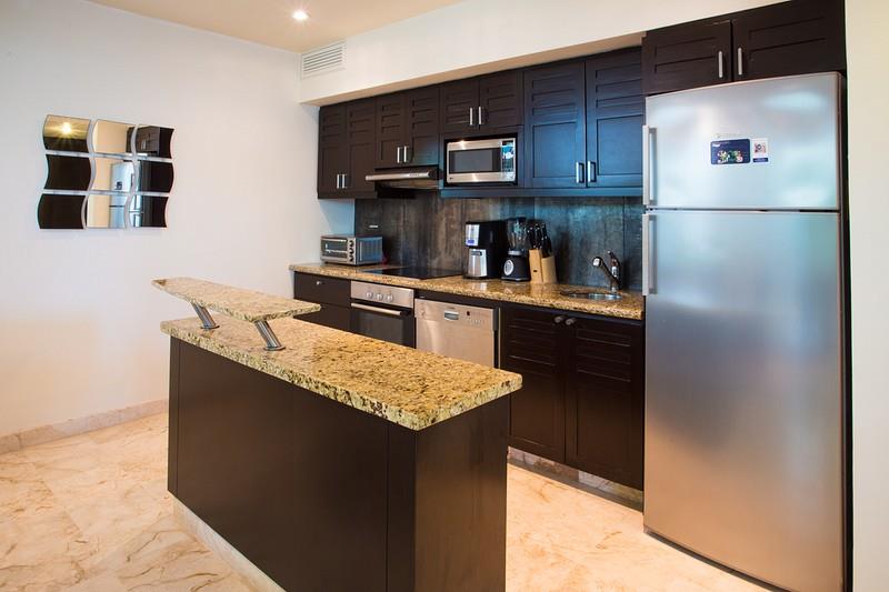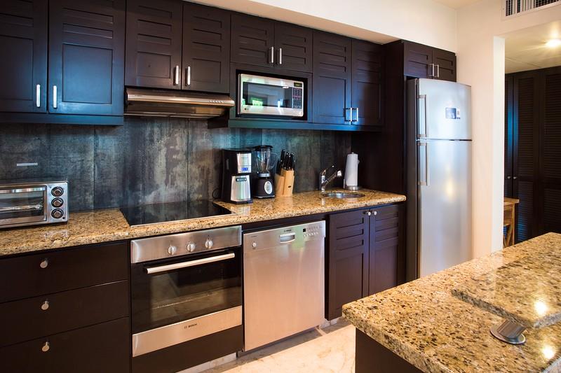 Its design was inspired in a Balinese style with excellent quality finishings, marble on floors and bathrooms granite countertops in the kitchen featuring dark accented cabinetry which contrasts with the light tones in the rest of the condo.