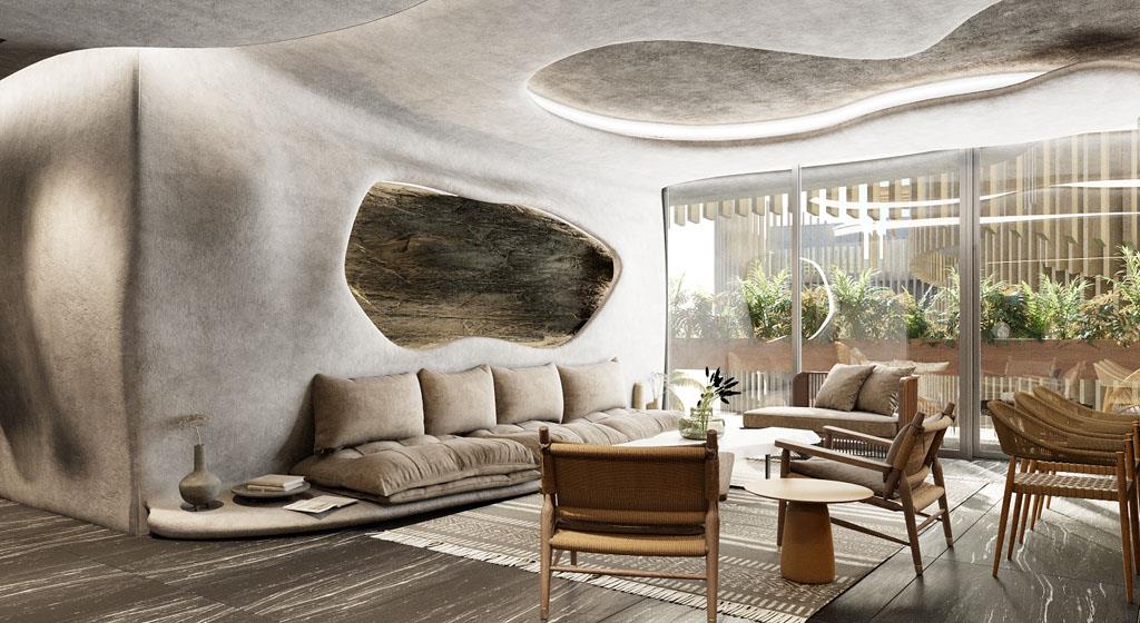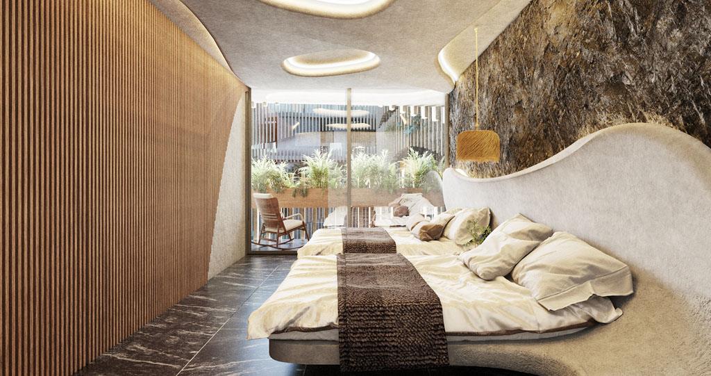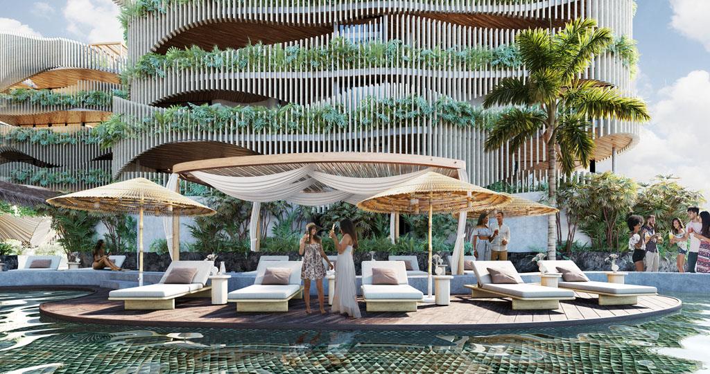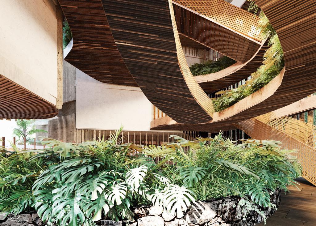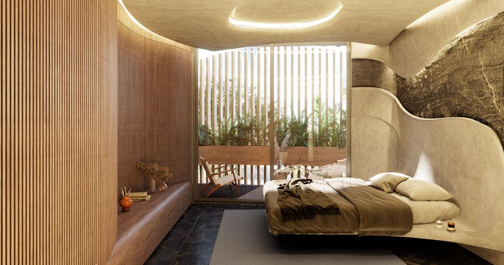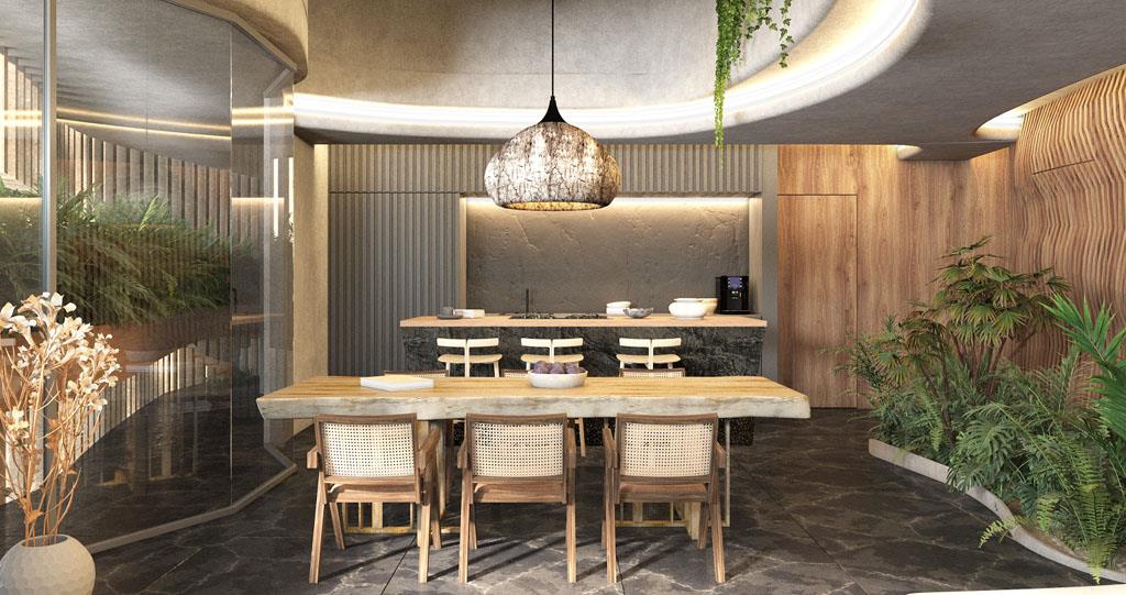 Each environment generates an experience of coexistence with the jungle environment and a view of the beach with the infinite sea. Every detail is subtle and elegant, surrounded by art because of the combination of its textures, curved shapes, and connection with nature.