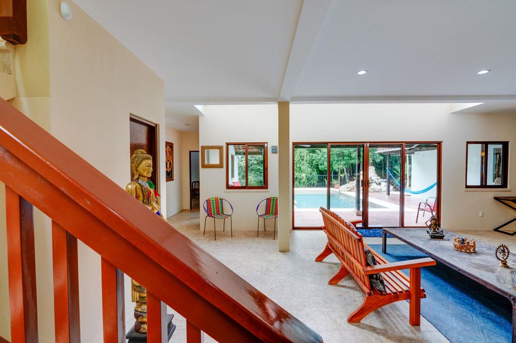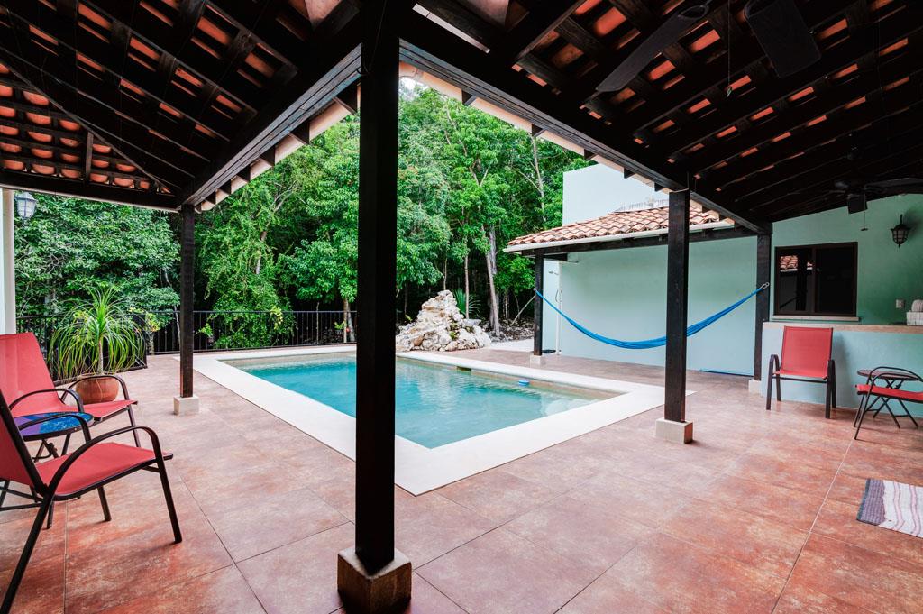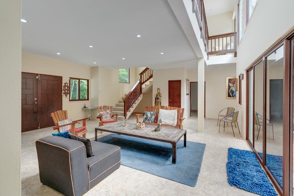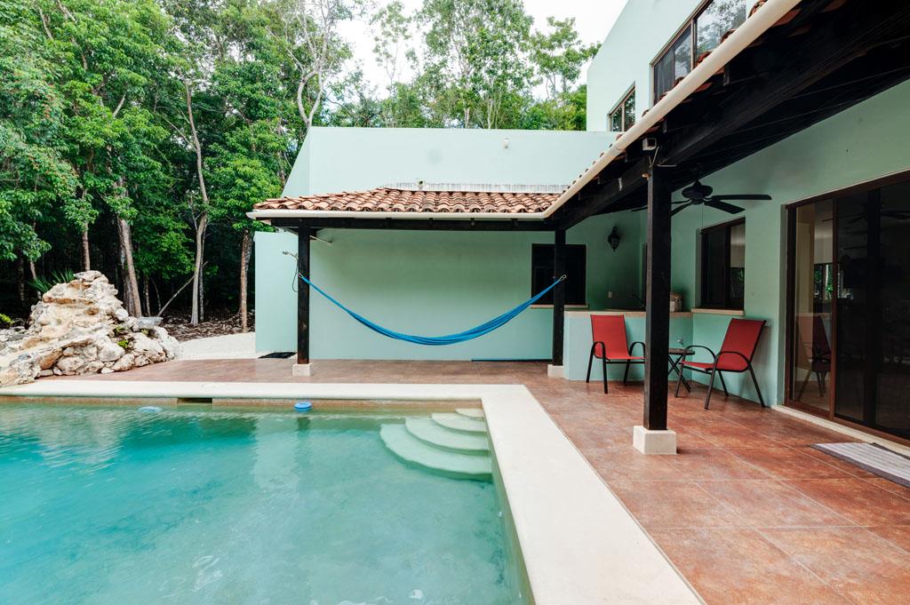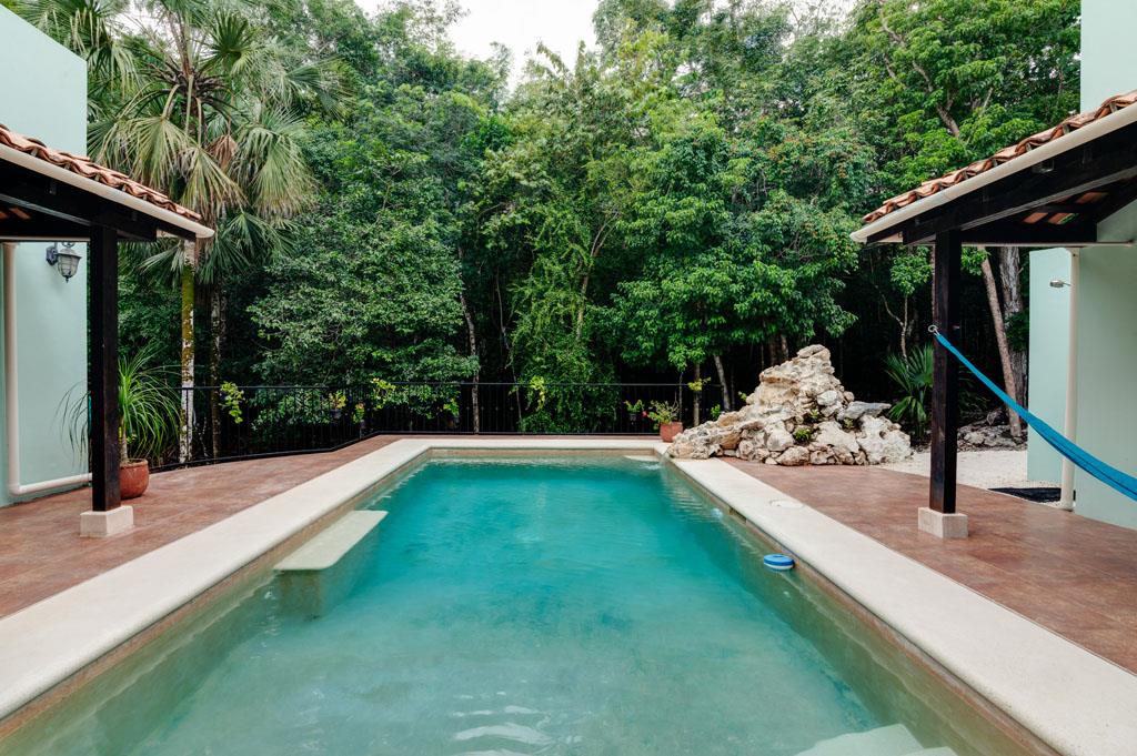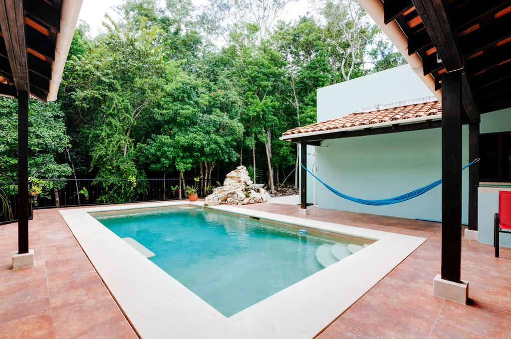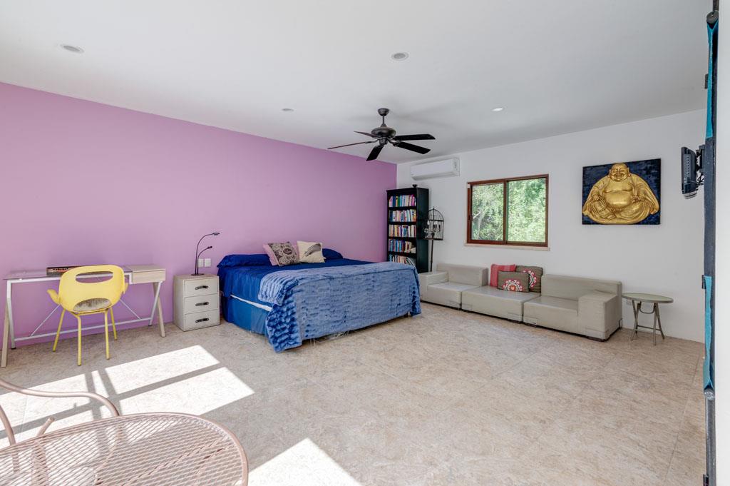Los Árboles, Tulum is a Mayan Jungle Hideaway – a master-planned gated and secure residential community located just minutes from the magnificent beaches of Tulum. There you will find ‘Casa de los Sueños’, an amazing custom-built 5 bedroom 5 bathroom home with a private pool and waterfall. This beautiful off-grid solar home for sale sits within a 1200-acre eco-preserve on its own private 4.57-acre lot. This environmentally responsible and affordable oasis has been designed to protect and preserve the pristine high-canopy jungle. With permeable roads, alternative energy, use of local & naturally harvested materials, green areas and easy access to beautiful and thoughtfully designed community amenities, this development is a dream home site for the eco-conscious.