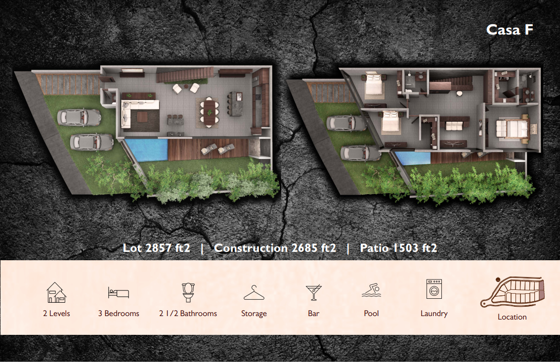 Welcome to a new development project with 19 luxury homes for sale in Akumal on one or two levels. Each of these homes has three bedrooms and a private pool with access to Common Areas exclusive to residents.