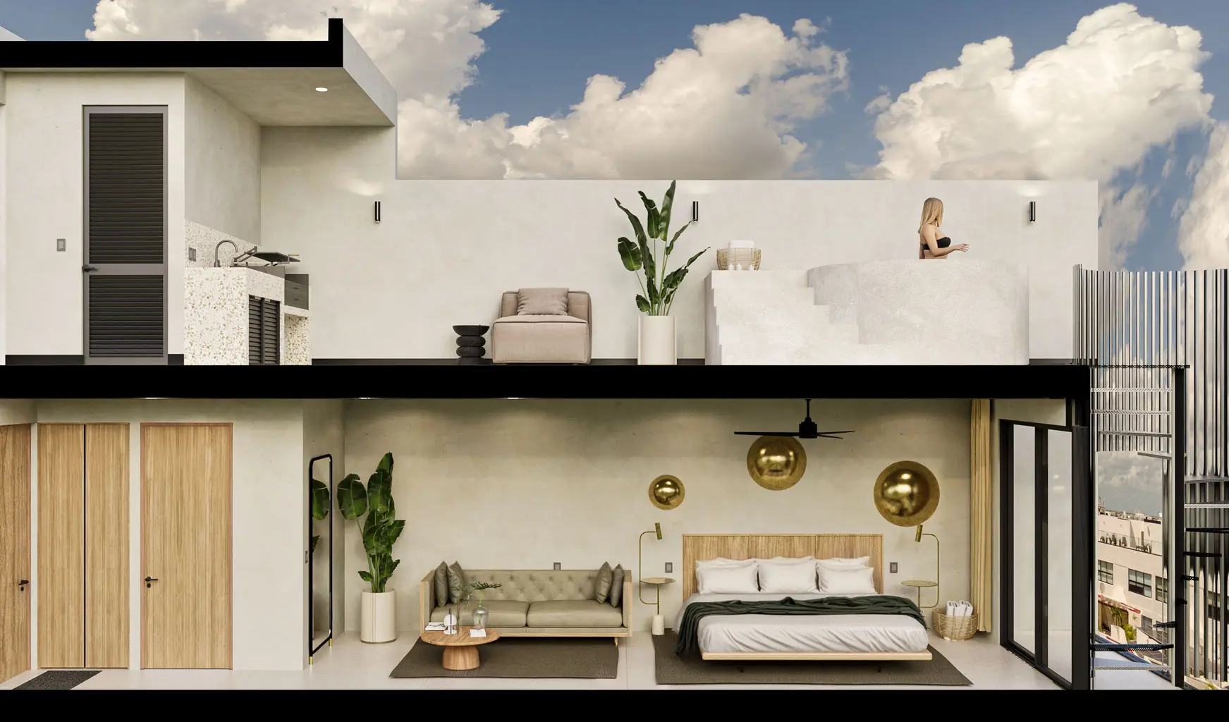 Luxury at the Top – Stylish Playa Studio PH with Rooftop Access for Sale in Playa del Carmen, Quintana Roo, Mexico.