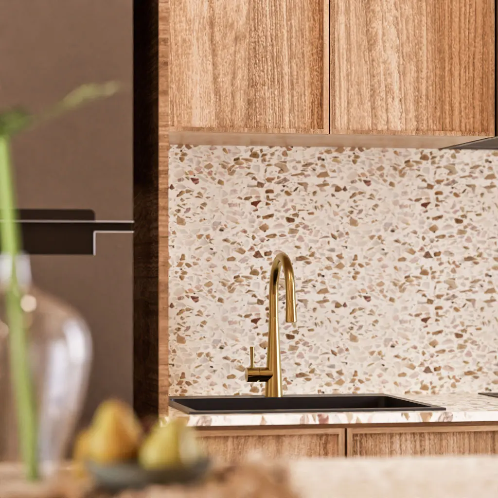 - Elegant materials: Stone white porcelain, travertine silver, terrazzo, and Sukabumi stone