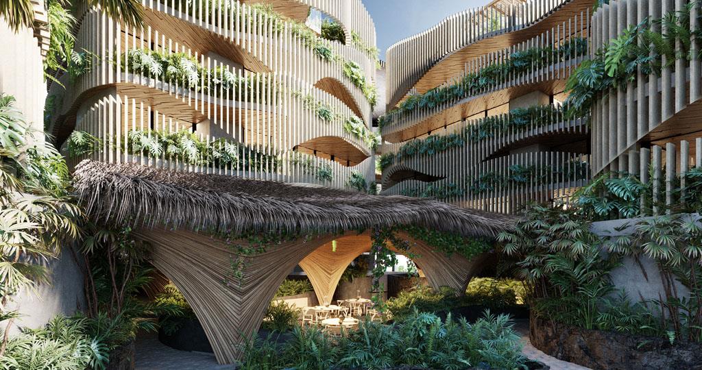 Each environment generates an experience of coexistence with the jungle environment and a view of the beach with the infinite sea. Every detail is subtle and elegant, surrounded by art because of the combination of its textures, curved shapes, and connection with nature.