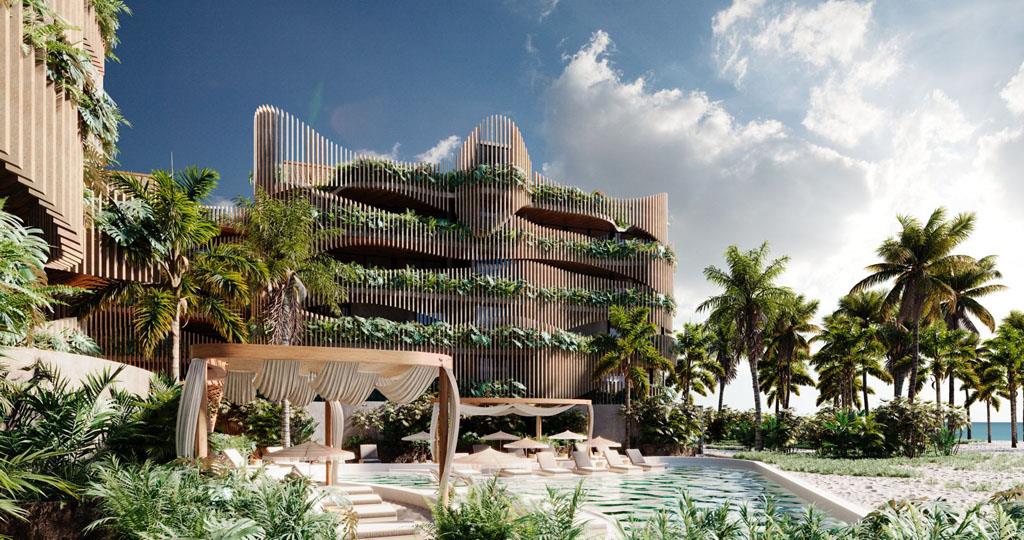 These new condos for sale in Tankah Bay are part of a development project with 30 Luxury condos with two and three bedrooms located within Tankah Bay. A place surrounded by mangroves and incredible cenotes, ideal to connect with your intuition and enjoy nature with a privileged view. The project is designed to create a space with organic shapes that integrate with the natural environment.