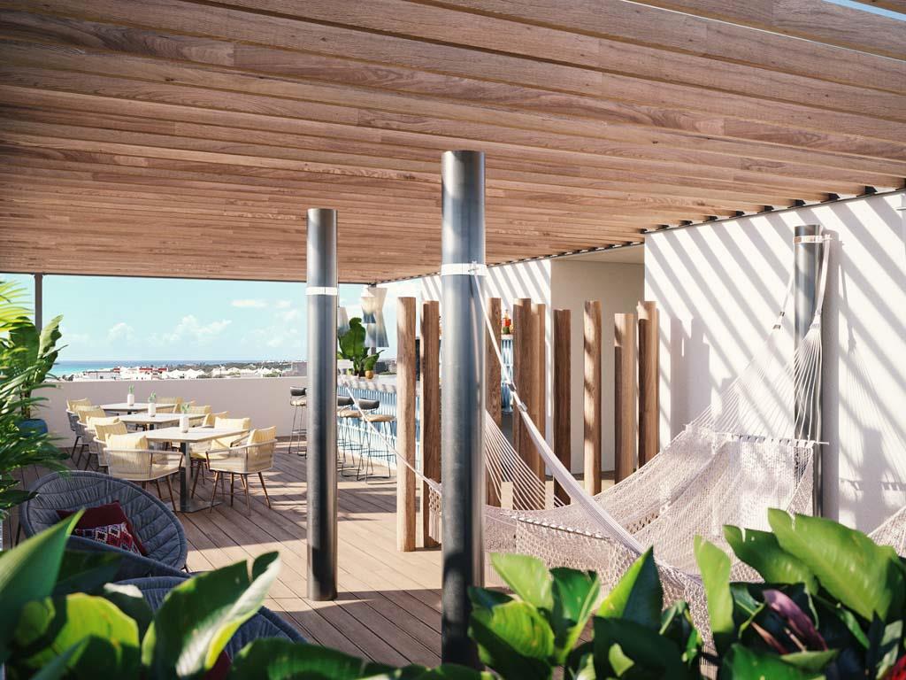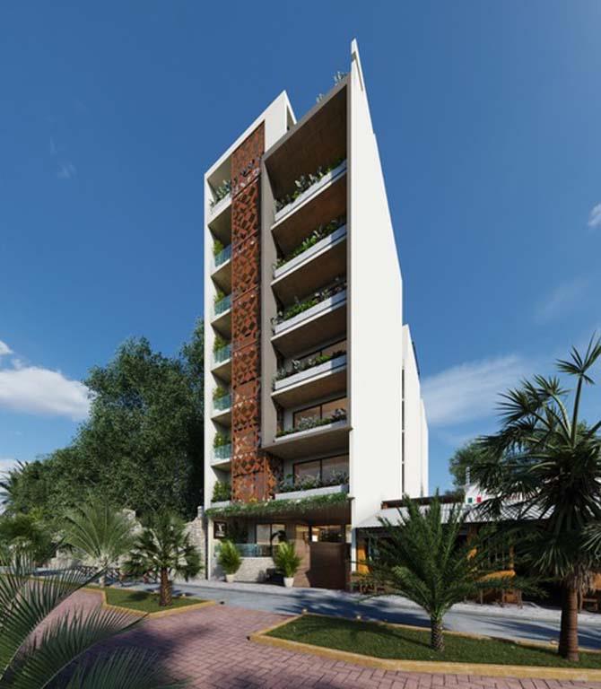 This brand-new real estate development will give you the privacy and calm you need, it will only have 46 one-bedroom units in a building with only eight apartments per floor. Very close to Fifth Avenue, the most emblematic street in Playa del Carmen, famous for its shops, restaurants, and nightlife all year round. Located a few steps from the sea, and very close to the main shops and restaurants of Playa.